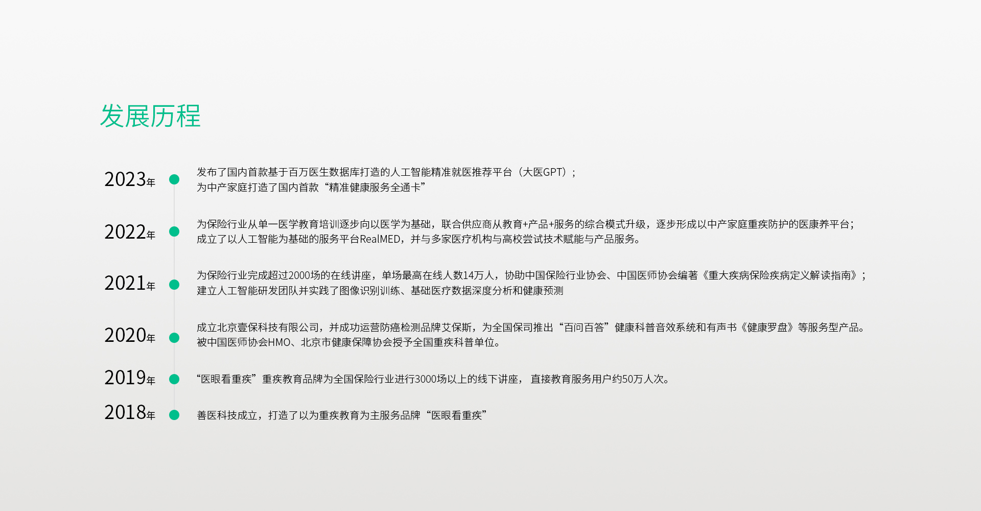 公司概况北京善医教育科技有限公司是一家致力于帮助1000万中产家庭实现重疾防护的健康服务科技公司。公司成立于2018年,总部位于北京。善医科技的业务模式专注于中产家庭的在重疾预防和康护服务。善医科技的三大业务方向,重疾风险健康教育(“医眼看重疾”品牌)、中产家庭重疾防护、人工智能大医推荐(大医GPT)及数据化服务,致力于帮助1000万中产家庭实现重疾防护这一目标,即无病做好防控,有病协助就医,院后...